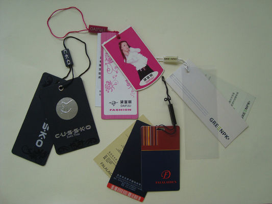 Ropa de lujo impresa de encargo Hang Tags Embossed Silver Foil de papel que sella el logotipo