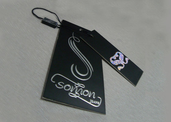 El papel de lujo de encargo Hang Tags For Clothing Brand graba en relieve la hoja de plata Logo Plastic Tags